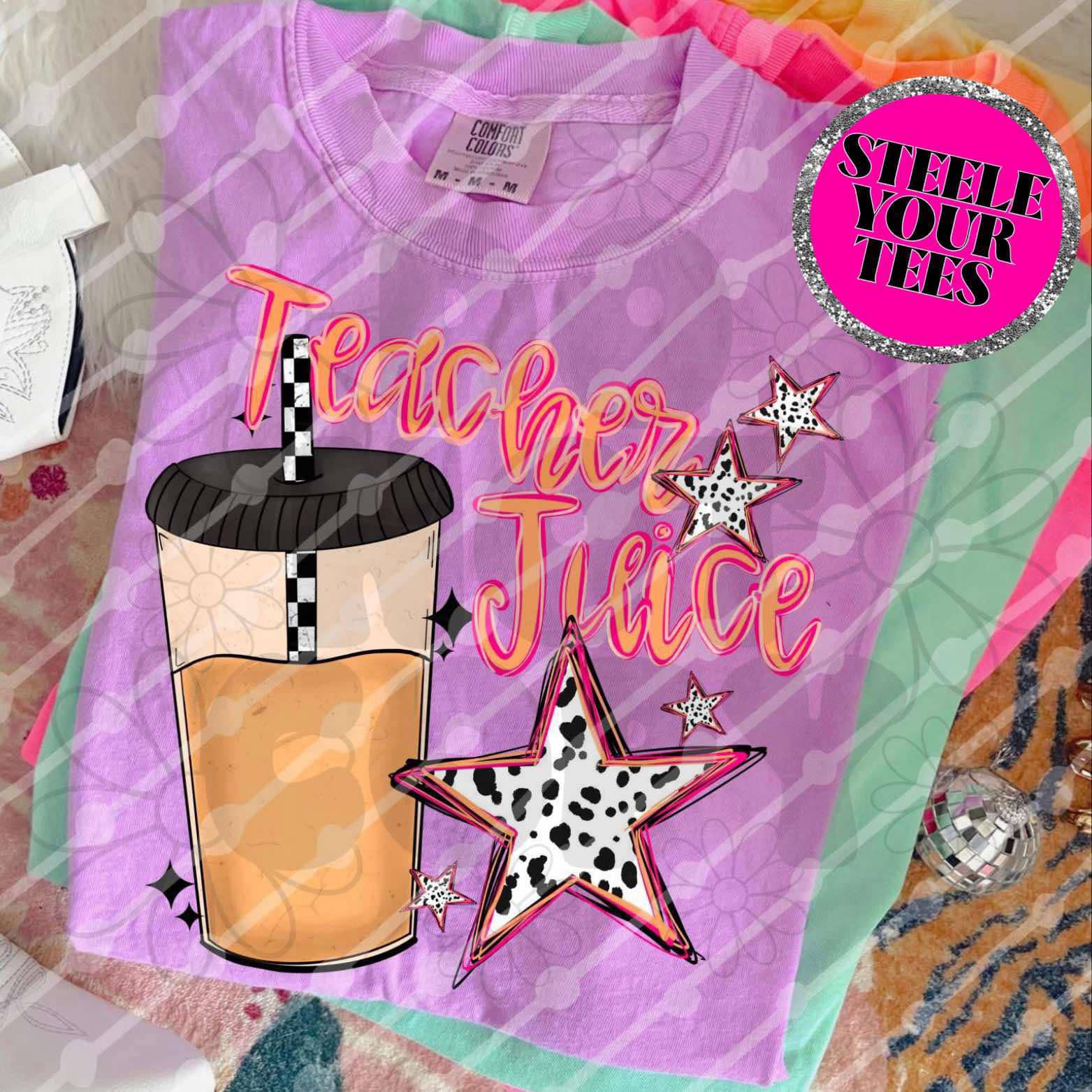 Fuel your day with a splash of fun in the "Teacher Juice" tee from Steele Your Tees! Perfect for educators who know that a little humor (and maybe a little caffeine) goes a long way. This playful shirt keeps you comfy through lesson plans and recess duty. Order now and your new favorite classroom companion will be on its way in 7-10 business days—because great teachers deserve great tees!